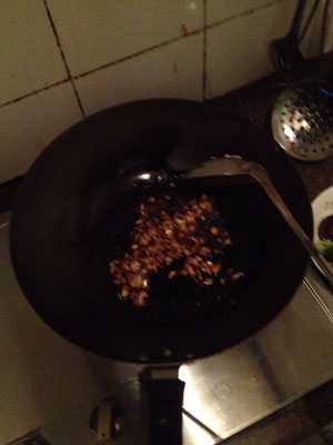 蔥切碎,切的越細(xì)小越好。 爆香,加入醬油和生抽,放少許鹽。(注意: